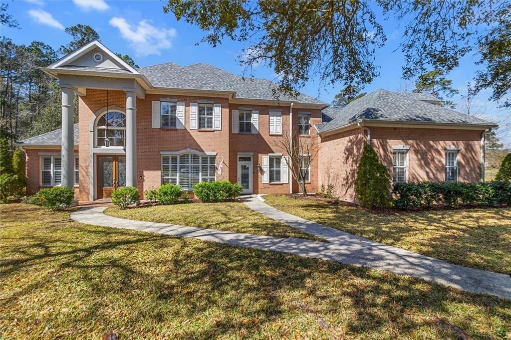 Offering upscale living in a super convenient location, this beautifully maintained home in Northpark Estates truly has room for everyone. Set on a large lot overlooking a peaceful pond, the tranquil views are easily seen through the soaring ceilings and expansive windows that fill the home with natural light. The open kitchen, keeping room, and breakfast area create an ideal space for both everyday living and entertaining. The kitchen is thoughtfully designed and exceptionally well appointed with quartz counters, double ovens, and a gas cooktop?both functional and elegant. The primary suite, located on the first floor, enjoys serene pond views and features a luxurious en-suite bath, offering a relaxing private retreat. Also on the main level are a designated office?perfect for a home workspace?and a grand living room anchored by a cozy wood-burning fireplace. Upstairs, you'll find three additional bedrooms, two full bathrooms, and a spacious game room, providing flexibility for guests or recreation. Storage is abundant with an attached three-car garage, walk-in attic space, and generous closet storage throughout the home. Outdoor living is just as inviting, with a covered patio and added rear awning?ideal for peaceful afternoons spent enjoying the view. Located at the front of the neighborhood on a quiet cul-de-sac, the setting offers exceptional convenience. The home has been meticulously cared for, features numerous updates and upgrades, and includes a brand new roof. Situated in Flood Zone B where flood insurance is not required by mortgage companies. Estates of Northpark is gated community offering a pool, playground and tennis courts. This home offers a rare opportunity to enjoy space, comfort, and a serene setting in a most desirable location.