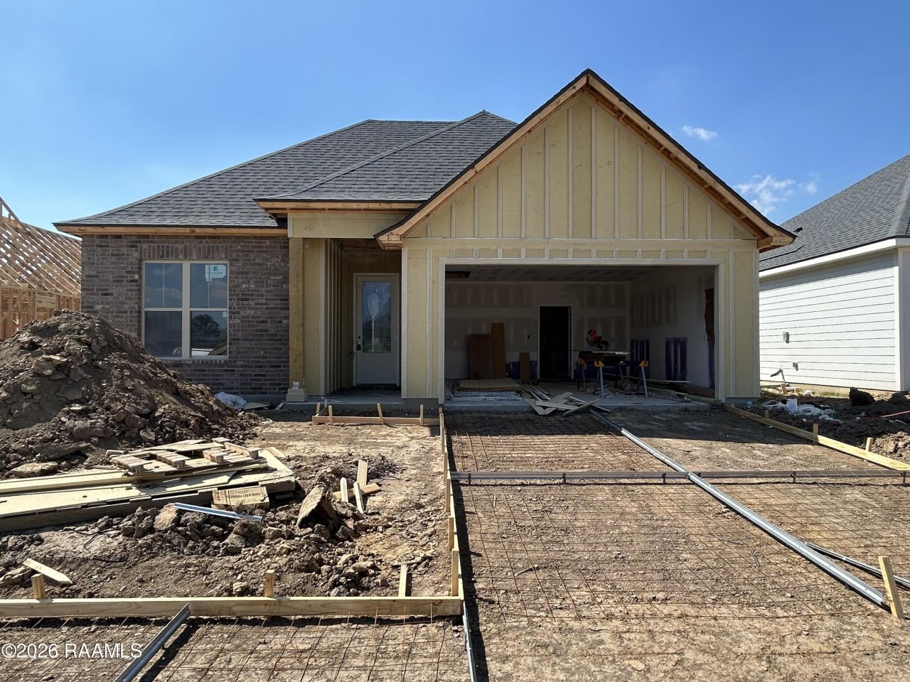 Energy Star Certified home located in The Pines in Scott featuring the Rosette Farmhouse I floorplan with 4 bedrooms and 2 bathrooms across 1,684 sq. ft. Exterior landscaping includes up to 10 pallets of sod. Inside, a solid beam lintel welcomes you into the dining and living areas, where a coffered, tongue and groove tray ceiling adds architectural detail. The living room also features a ventless gas fireplace with tile surround and wood mantle. Vinyl plank and tile flooring run through the main living areas, with carpet in the secondary bedrooms. The kitchen includes custom cabinetry with soft close cabinet doors and included hardware, 3cm granite countertops, and a 30 freestanding gas range paired with a microwave and hoodvent combo. A tankless gas water heater adds energy efficiency. The primary bathroom offers a garden tub with tile surround along with a fiberglass shower pan featuring tiled walls and a recessed niche. The secondary bathroom includes a fiberglass tub and shower combo. Slab countertops are carried throughout the home for a cohesive finish, making this home one that you dont want to miss. Call to schedule your showing today!